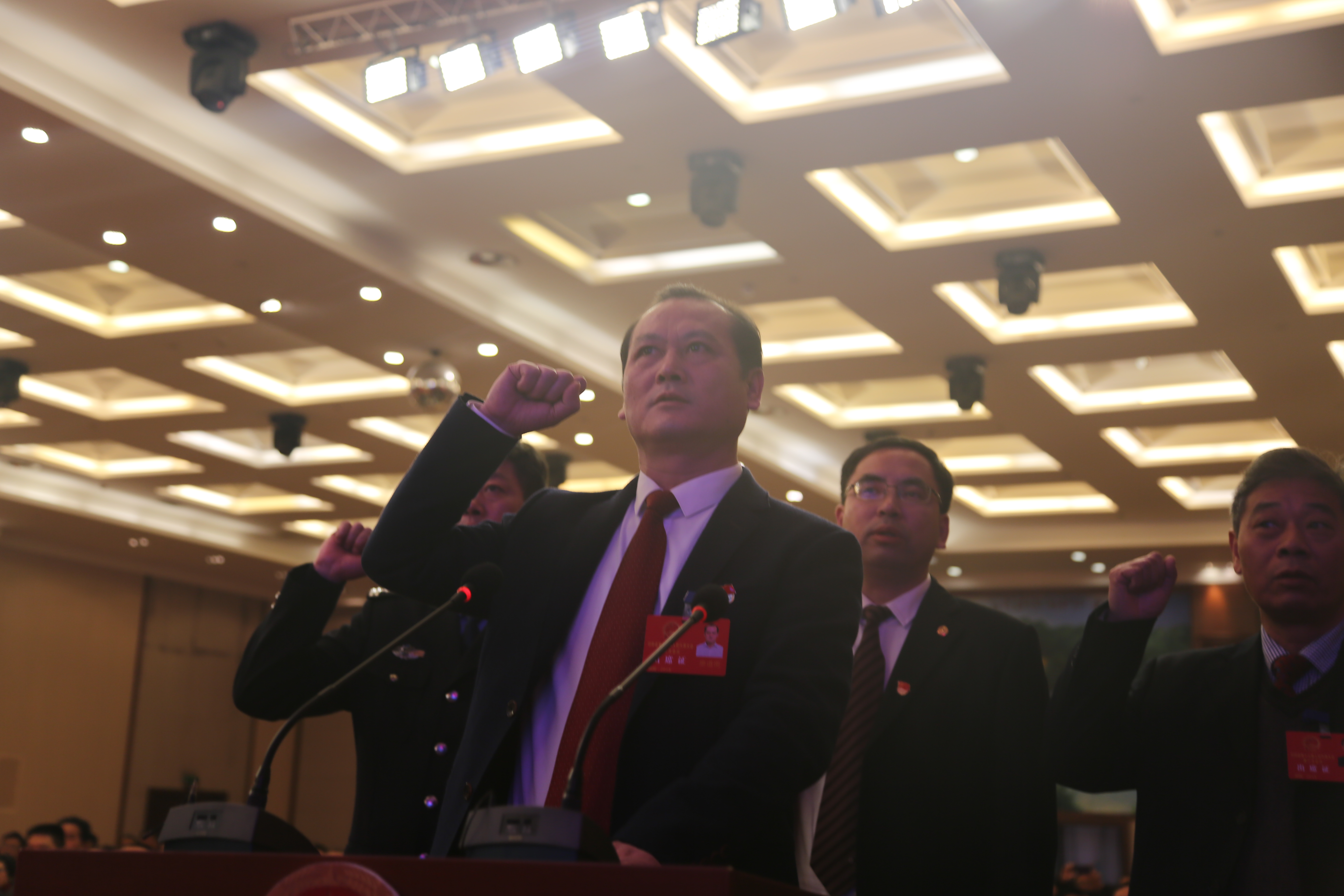 “我宣誓:忠于中华人民共和国宪法,维护宪法权威,履行法定职责……”1月10日上午10:08分,湖南省祁阳县第十七届人民代表大会第三次会议举行第三次全体会议,以无记名投票方式选举产生监察委员会主任。祁阳县委常委、县纪委书记廖道南当选为祁阳首任监察委员会主任,并在全体代表的见证下,面对宪法郑重宣誓。