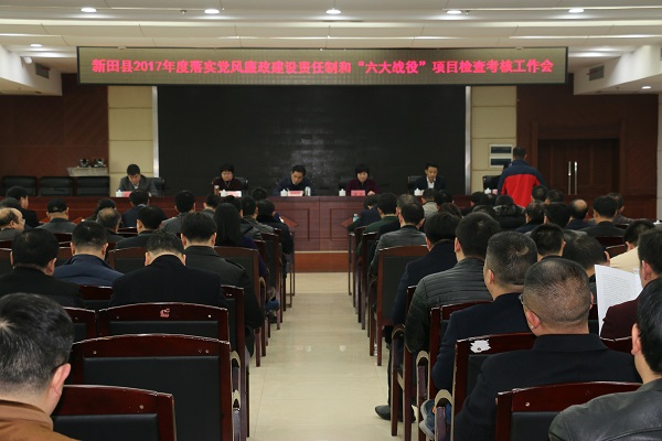 1月16日,永州市委副书记、政法委书记唐湘林率检查考核组,对新田县2017年度落实党风廉政建设责任制情况进行年度集中检查考核,永州市纪委副书记、市监察委副主任黄薇等参加考核工作。
