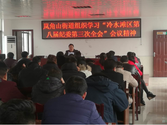 2月2日下午三点,冷水滩区第八届纪委第三次全会刚结束,岚角山街道第一时间组织召开村(社区)支书、直属单位负责人、办事处全体干部职工会,传达、学习全会精神。