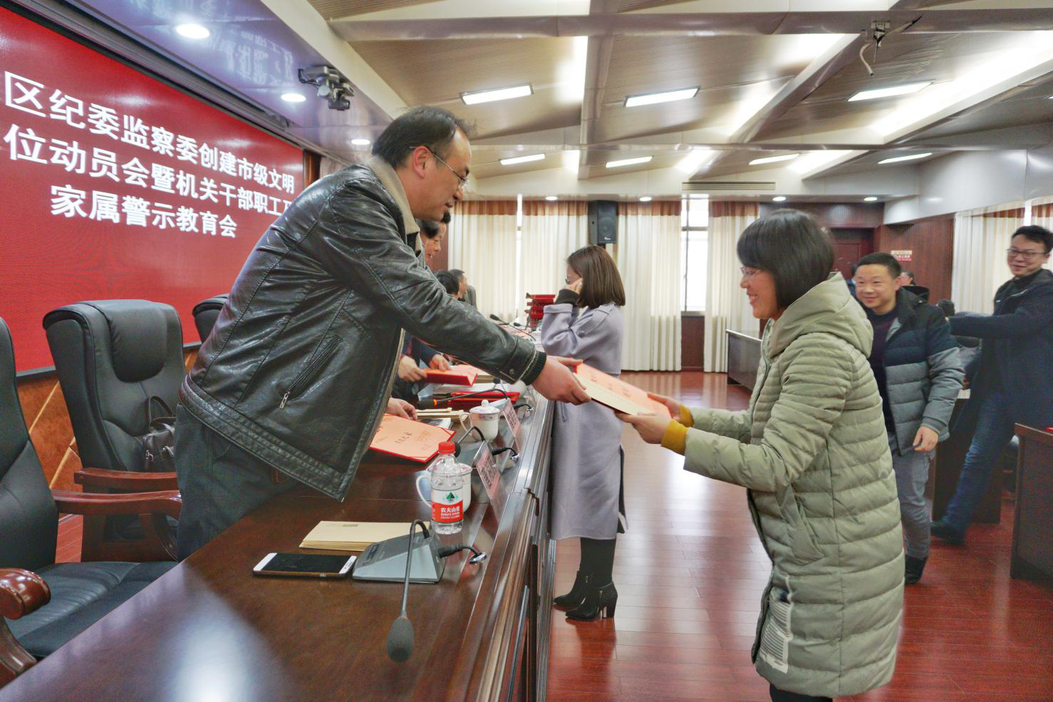 2月12日下午,冷水滩区纪委、区监察委召开创建市级文明标兵单位动员会暨委机关干部职工及家属警示会,将廉政教育延伸到干部家庭,有力地筑牢党员干部拒腐防变家庭“防腐墙”。