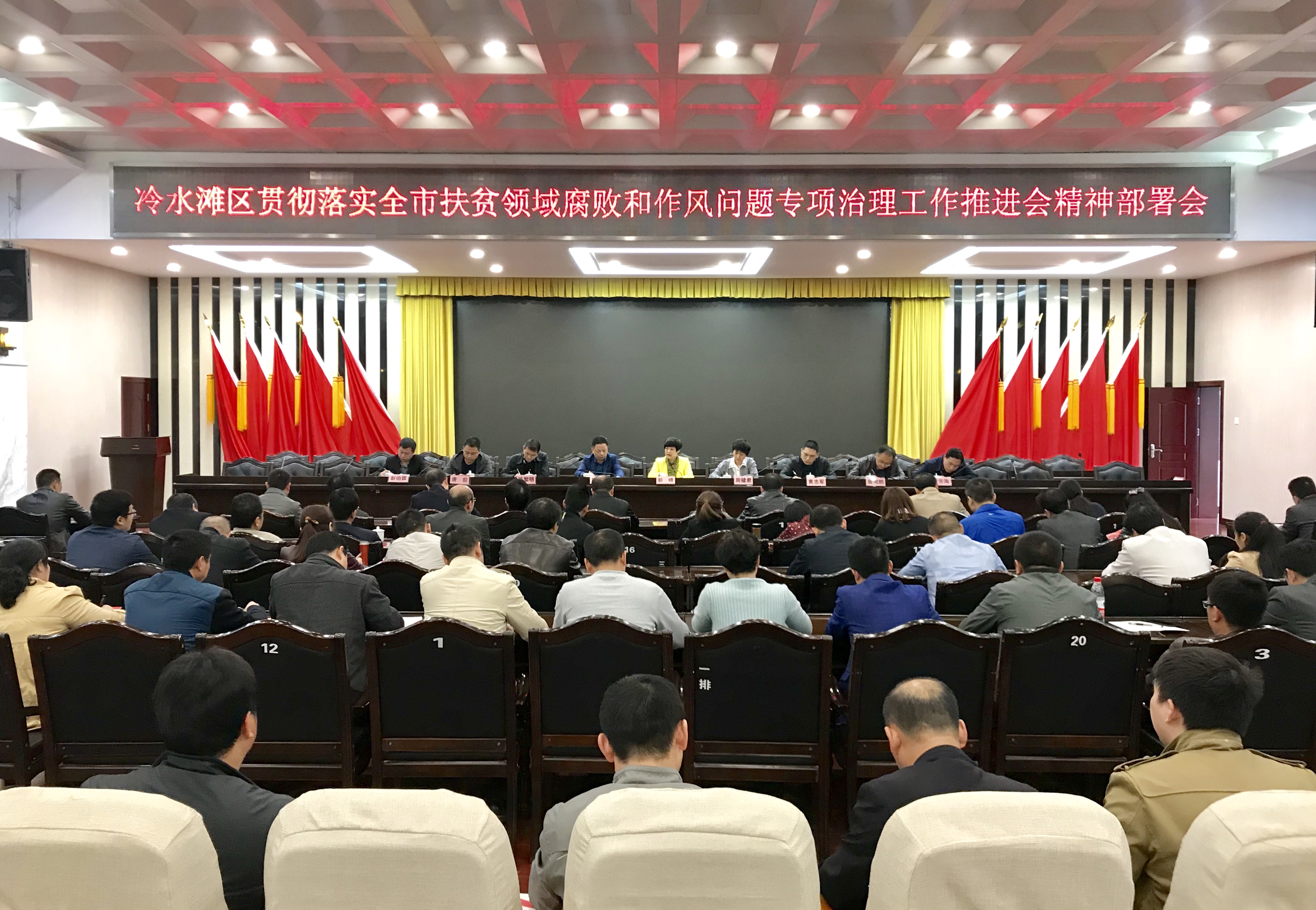 3月30日上午,永州市冷水滩区贯彻落实全市扶贫领域腐败和作风问题专项治理工作推进会精神部署会召开。区委常委、区纪委书记、区监察委主任彭峰强调,全区上下要聚焦新形势新任务新要求,强化监督执纪问责,为打赢脱贫攻坚战役提供坚强的纪律和作风保障。