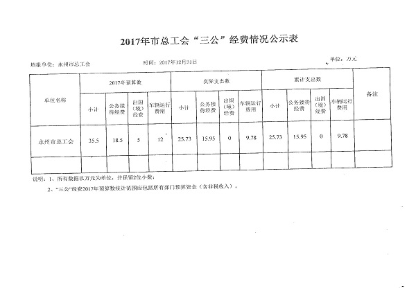 因永州市总工会门户网站因故暂停使用,现将市总工会2017年度“三公”经费在永州市廉政网上进行公示,请予监督。