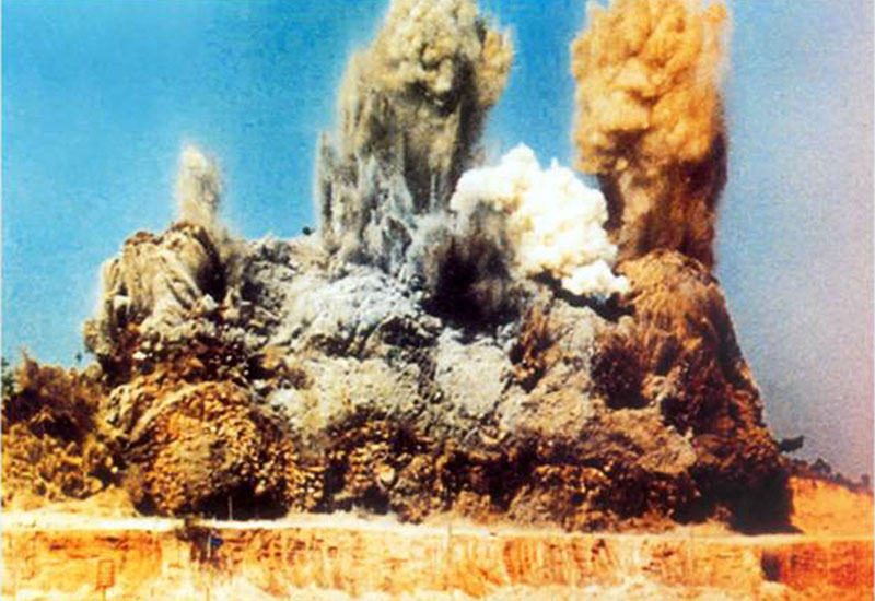 建港填海的“开山炮”在深圳蛇口炸响(资料照片)。新华社发