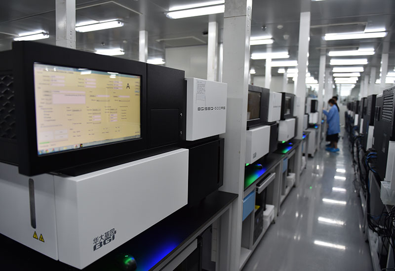 2017年7月13日,工作人员在位于深圳的中国国家基因库操作基因测序仪测序。新华社记者毛思倩摄