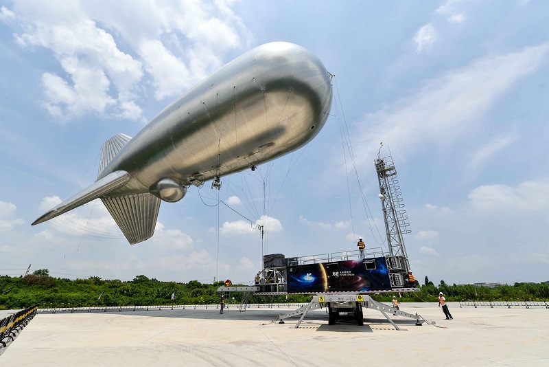 在光启东莞生态园的研发基地,集广域互联网信息传输和光学监控于一体的“云端号”准备升空(2016年7月7日摄)。新华社记者毛思倩摄