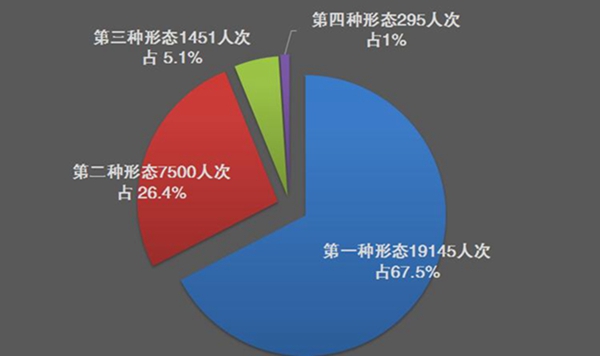 将监督执纪“四种形态”融合在日常监督管理中,更好地推动“四种形态”常态化、制度化,实现“惩前毖后、治病救人”的效果。今年上半年,全省各级纪检监察机关共运用“四种形态”处理28391人次。其中第一种形态19145人次,占67.5%;第二种形态7500人次,占26.4%;第三种形态1451人次,占5.1%;第四种形态295人次,占1%。