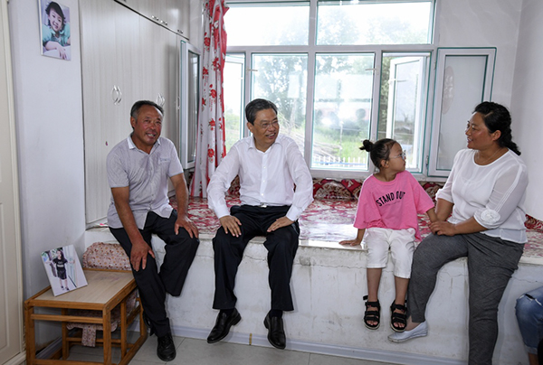 7月24至27日,中共中央政治局常委、中央纪委书记赵乐际到黑龙江省调研。这是7月24日,赵乐际来到抚远市团结村,走进村民家中看望。(新华社记者 张领 摄)