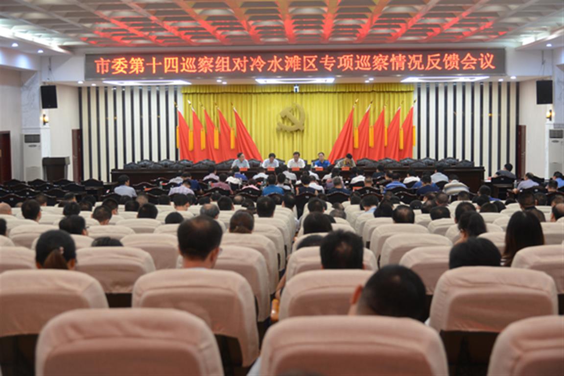 根据市委的安排,8月2日,市委第十四巡察组向冷水滩区反馈交叉专项巡察情况。市委副书记、市长赵应云出席反馈会,并对巡察整改提出具体要求。市委第十四巡察组组长周建宏代表市委巡察组向冷水滩区党委进行了反馈,冷水滩区委书记何冲龙主持会议并作表态讲话。市委巡察工作领导小组成员、市纪委副书记、市监委副主任蒋俊林,市委第十四巡察组副组长王本雁,市委第十四巡察组联络员邓建华参加会议。会前,向冷水滩区委书记何冲龙反馈了巡察情况。
