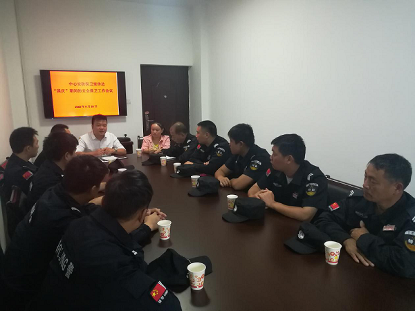2018年9月28日上午,中心安防保卫室召开传达“国庆”期间的安全保卫工作会议,部署国庆期间安全保卫、安全防范工作。