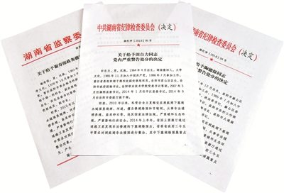 图为湖南省纪委监委给予相关责任人的处分决定。彭超雄 摄