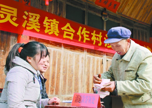 2月7日,永顺县灵溪镇合作村,纪委工作人员在给村民清退扶贫领域违纪款。(资料照片)熊辉 刘红 摄