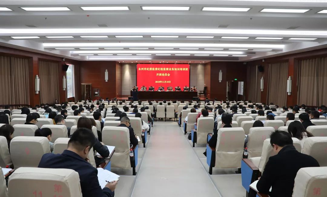 11月19日,永州市纪委市监委纪检监察业务知识培训班开班。市委常委、市纪委书记、市监委主任杨永出席开班仪式并做开班动员,他号召全市纪检监察干部要以高度的政治责任感和使命感,积极锻造过硬本领,努力成为执纪执法的行家里手。会议由市纪委常务副书记、市监委副主任蒋俊林主持。