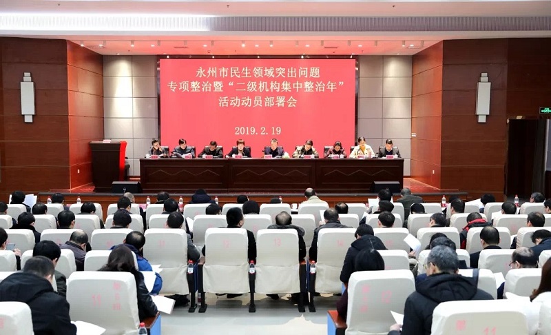 会议宣读了《永州市民生领域突出问题专项整治实施意见》和《永州市“二级机构集中整治年”活动实施意见》,并进行了政策解读。市教育局、市卫健委分别介绍了教育和卫生领域开展专项整治的工作经验。