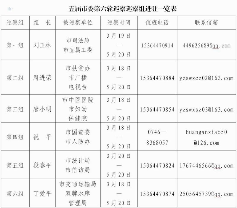 3月18日—20日,市委6个巡察组分别进驻市司法局、市直属工委、市扶贫办、市广播电视台、市中医医院、市妇幼保健院、市国资委、市人防办、市统计局、市信访局、市交通运输局、双牌水库管理局等12个单位,并召开动员会。标志着五届市委第六轮常规巡察工作全面展开。