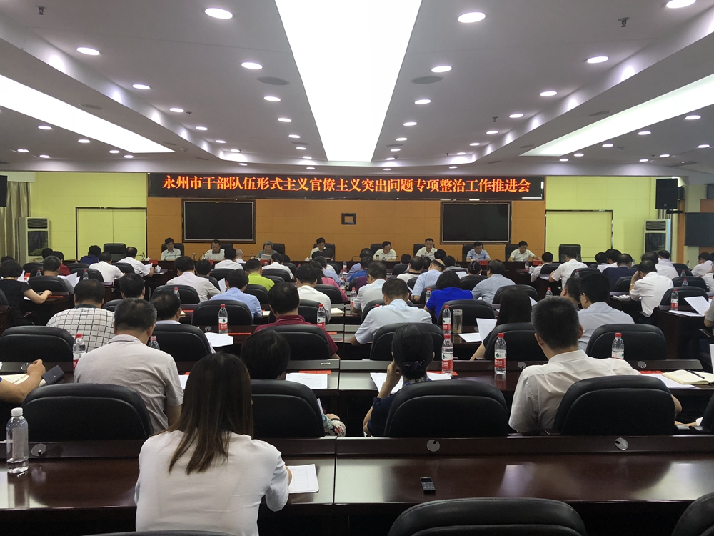 7月25日下午,全市干部队伍形式主义官僚主义突出问题专项整治工作推进会在冷水滩召开,深入学习贯彻习近平总书记关于反对形式主义官僚主义的重要论述、省委十一届八次全会有关精神,总结回顾前段工作,对专项整治工作再部署、再加压。市委书记严华在会上强调,要进一步坚定信心决心,同形式主义官僚主义作坚决斗争,彻底根除“病原体”,铲除新表现的滋生土壤,打好打赢集中整治形式主义官僚主义这场攻坚战、持久战,营造风清气正的政治生态。