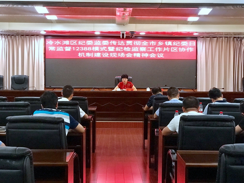 7月24日下午,冷水滩区纪委监委召开会议传达贯彻全市乡镇纪委日常监督12388模式暨纪检监察工作片区协作机制建设现场会会议精神。区纪委监委机关各室主任、派驻纪检监察组组长、乡镇街道纪(工)委书记参加会议。