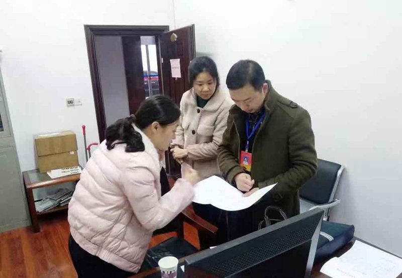 ▲2019年春节期间,派驻纪检监察组对交叉检查的市直机关单位进行作风督查,贺宁(右一)仔细检查财务账目,是否存在违规发放经补贴和奖金福利。