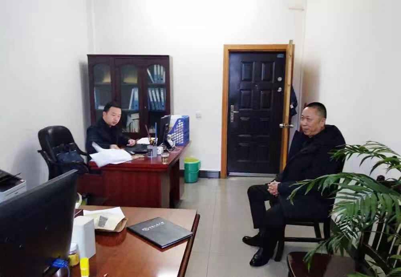 ▲在派驻市城管局纪检监察组办公室内,贺宁(左一)在对下属单位进行谈话。