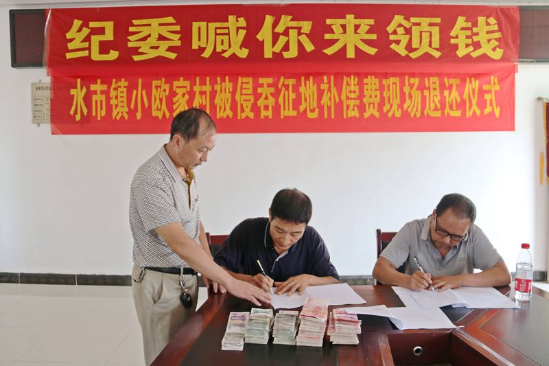 “多亏纪委的同志,被侵吞多年的征地补偿费才能顺利拿回来。”日前,宁远县水市镇纪委在小欧家村举办被侵吞征地补偿费现场退还仪式,将11.8万元钱款交付村民代表,以实际行动回应群众关切。