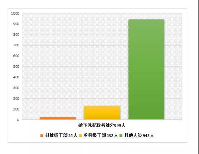 今年1—3季度,全市纪检监察机关共接受信访举报1870件,处置反映问题线索3118件,谈话函询838件。全市纪检监察机关共立案1551件,结案1006件,给予党纪政务处分999人,其中,县处级干部24人,乡科级干部132人,其他人员943人。