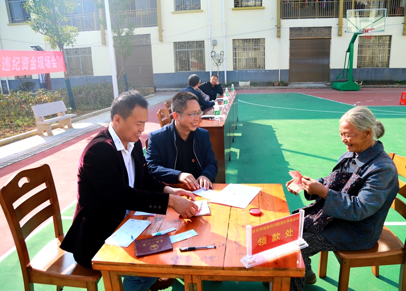 11月7日,江华瑶族自治县小圩壮族乡举办了一场扶贫领域腐败问题违纪资金清退会,将个别村干部以“管理费”、“协调费”、“危房改造办证手续费”、“盖章费”等名义向村民群众违规收取的18000元退还给群众。瞧,这位大娘领到了被侵占的危房补助款,笑得多开心啊!