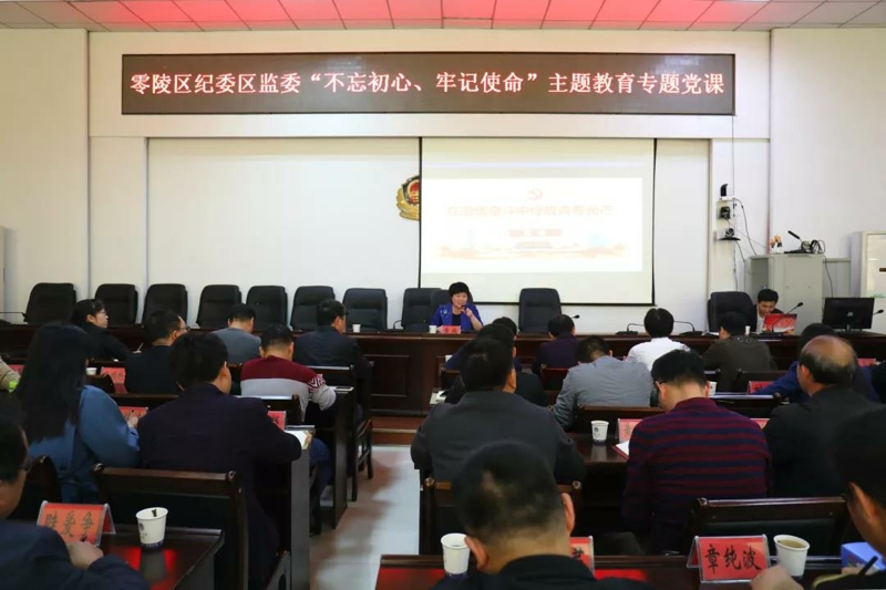 11月11日下午,永州市纪委副书记、监委副主任黄薇,结合“不忘初心、牢记使命”主题教育,为零陵区纪检监察干部上了一堂专题党课,区纪委监委机关全体干部、各派驻纪检监察组等百余人共享教育“大餐”。