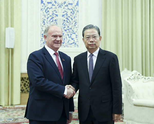 中共中央政治局常委、中央纪委书记赵乐际在人民大会堂会见由俄罗斯联邦共产党中央委员会主席久加诺夫率领的俄共代表团。
