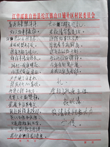 2020年1月8日一大早,江华沱江镇山口铺社区上赖家自然村五保老人赖兆清来到社区办公室,找到沱江镇纪委专职委员蒋联芳,从口袋里掏出一份折叠整齐的信纸,小心翼翼地展开来,双手递到蒋联芳手中说:“这是我想对你们说的真心话,你们看看吧”然后羞涩地走了。
