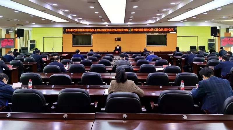 为认真贯彻落实省纪委会议精神,永州市委常委、市纪委书记、市监委主任杨永随即在永州分会场召开会议,结合永州实际,部署决战脱贫攻坚、防控新冠肺炎、信访等相关工作。