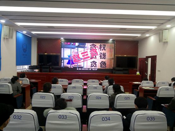 ▲双牌县政法委党员干部观看《迷失的初心3》警示教育片