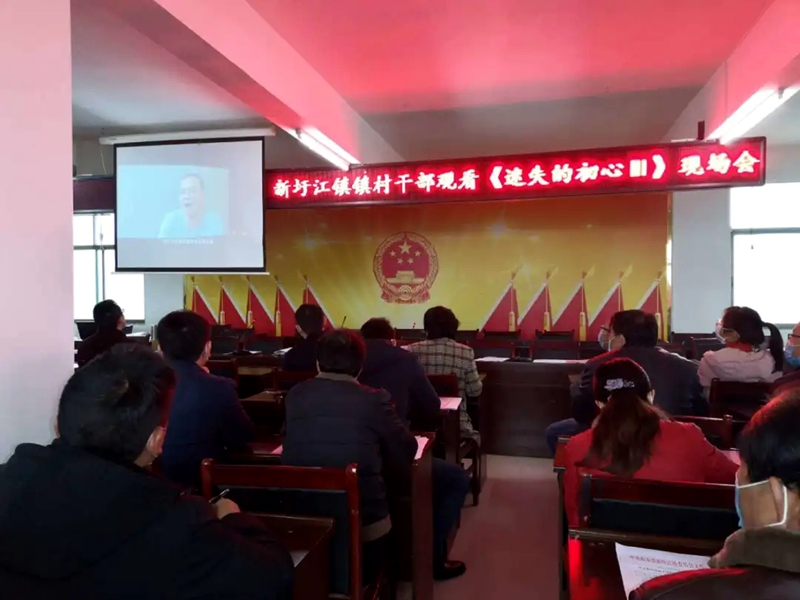 ▲东安县新圩江镇组织全镇镇、村干部观看《迷失的初心3》警示教育片