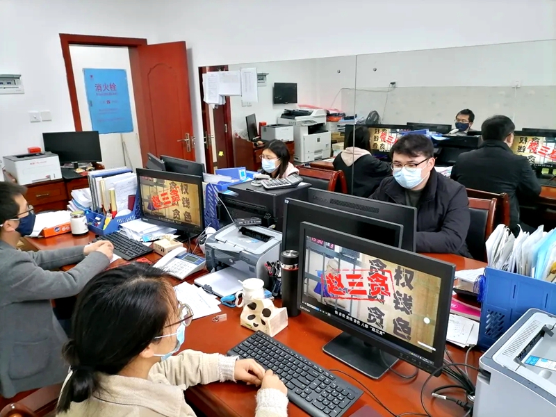 ▲零陵区委网信办通过内部网络观看警示教育片《迷失的初心3》。