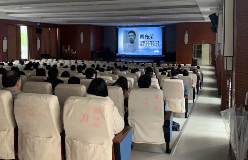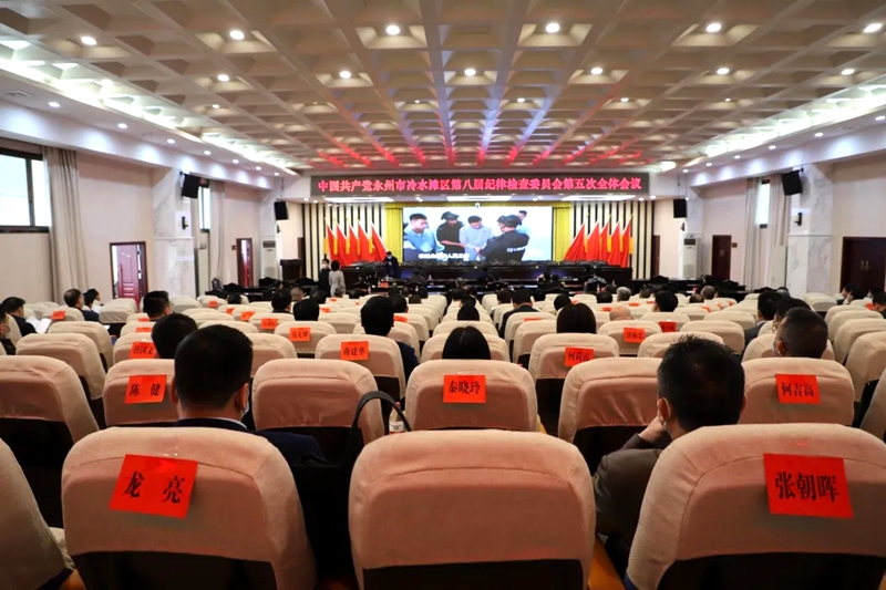 ▲冷水滩区在第八届纪委五次全会上播放警示教育片《叩问初心》