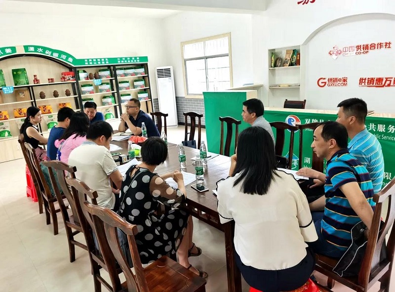 ▲在双牌县麻江镇廖家村村级活动中心,采访团就“合作社+监督” 护航扶贫产业健康发展的特色做法与当地人员进行深入交流。