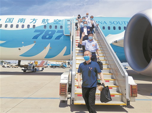 飞机上,不少代表翻阅着当天的湖南日报,其中中国(湖南)赴津巴布韦医疗专家组的相关新闻吸引了大家的目光。“医疗‘湘军’用实际行动践行习近平总书记‘人类命运共同体’理念,好样的!”大家纷纷竖起大拇指,为勇敢“逆行”的“医疗湘军”点赞。“今天是5月20日,‘520’,我爱你们!”黎志宏、张涤、胡春莲等代表还通过记者隔空传话,向专家组表达敬意,送上暖心祝福。