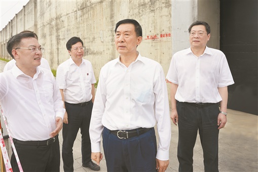7月16日下午,国务委员、国家防总总指挥王勇在长沙县㮾梨城市防洪及水环境综合治理工程现场,检查工程建设和城市防洪情况。