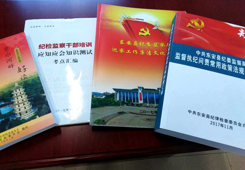 创新开展警示教育活动载体,利用警示教育片、印发警示教育材料,将警示教育课堂搬到红色教育基地等方式,不断增强警示教育针对性、实效性,为纪检监察干部立规矩、画红线。编印、发放《东安县纪检监察干部廉洁教育读本》《县纪委监委监督执纪问责常用政策法规制度汇编》《东安县纪检监察干部基本素质能力和岗位业务技能规范》等学习资料共计6000余册。