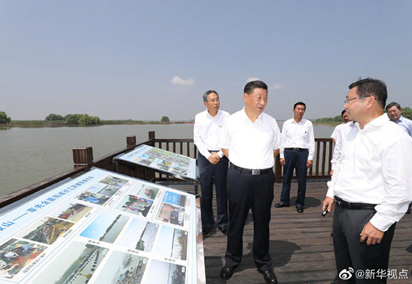 习近平总书记19日下午在安徽省合肥市考察调研。他在肥东县十八联圩生态湿地蓄洪区巢湖大堤罗家疃段,察看巢湖水势水情,看望慰问防汛抗洪一线人员、先进典型代表和参加抗洪抢险的解放军、武警部队官兵。当天下午,习近平在合肥还参观了安徽创新馆和渡江战役纪念馆,了解安徽省科技创新和新兴产业发展情况,重温革命历史、缅怀革命先烈。(文字记者:张晓松 摄影记者:鞠鹏 王晔 燕雁)