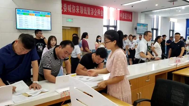 为进一步优化营商环境,日前,永州市“纪委喊你来领钱”暨涉企押金、保证金现场集中清退活动在市民中心举行,首批涉及64家企业的投标保证金、劳保基金、占破道挖掘修复费等共计701.855万元全部退还给企业。