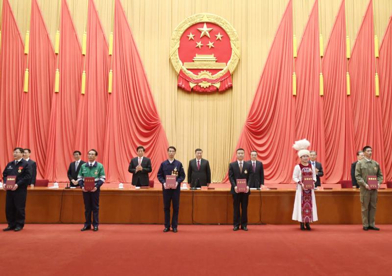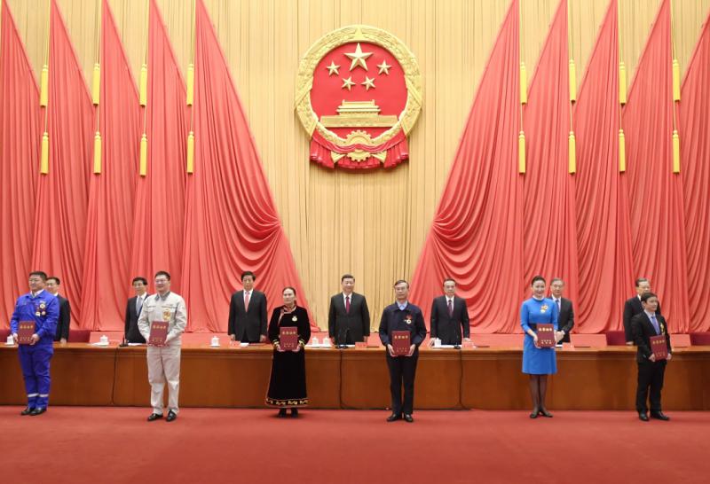 11月24日,全国劳动模范和先进工作者表彰大会在北京人民大会堂隆重举行。中共中央总书记、国家主席、中央军委主席习近平出席大会并发表重要讲话。新华社记者 丁林 摄