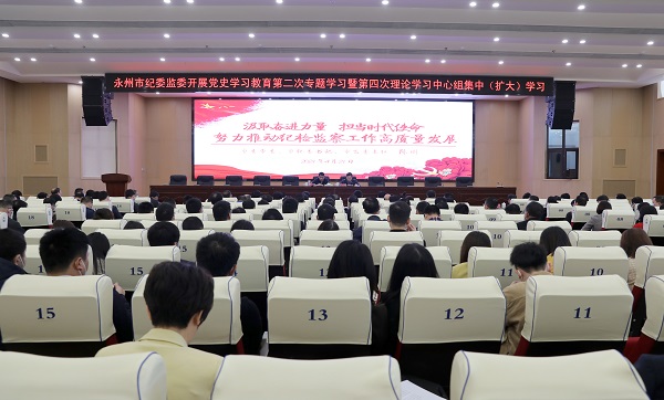 会议以“汲取奋斗力量 担当时代使命 努力推动纪检监察工作高质量发展”为题进行了专题授课,要求广大纪检监察干部要进一步感悟思想伟力,不断提高政治判断力、政治领悟力、政治执行力,切实增强“四个意识”,坚定“四个自信”,做到“两个维护”;进一步把握历史发展规律和大势,深刻领悟全面从严治党新要求,准确把握党风廉政建设和反腐败斗争阶段性特点,坚持从政治上看问题,一体推进不敢腐不能腐不想腐;进一步贯彻实事求是思想路线,以“求是”的精神研究新情况、发现新规律,推进党和国家治理体系和治理能力现代化;进一步树牢宗旨意识,时刻树牢执纪为民的工作导向,解决好群众的“急难愁盼”问题;进一步发扬革命精神,把严的主基调长期坚持下去,以系统施治、标本兼治的理念正风肃纪反腐,为建设现代化新永州营造风清气正的社会环境。