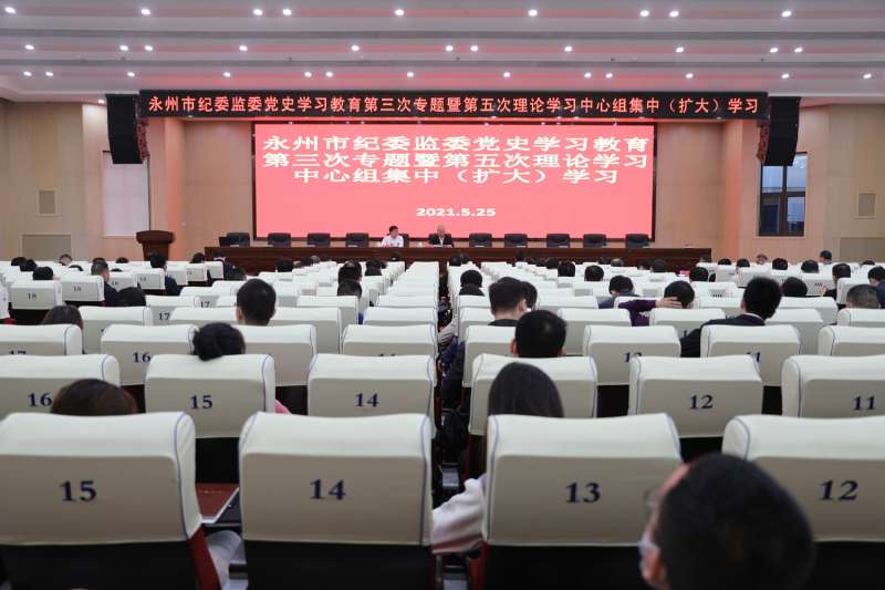 5月25日,市纪委监委举行党史学习教育第三次专题——“学史崇德”专题学习暨第五次理论学习中心组集中(扩大)学习。市委党史学习教育第七指导组到会指导,在家委领导、委机关和市委巡察办、组全体干部参加学习会议。