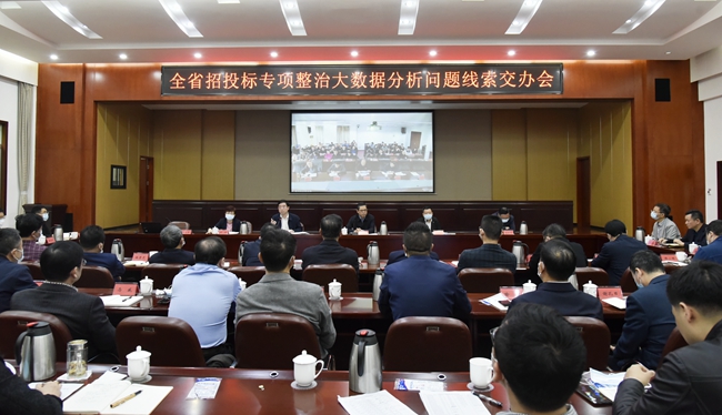 11月4日,全省招投标专项整治大数据分析问题线索交办电视电话会议在长沙召开,面对面向有关纪检监察机关(机构)、公安部门和行政监管部门,交办大数据分析出来的招投标违法违规、项目关键岗位人员违规变更、公职人员、事业单位工作人员违规参与招投标等3方面的问题线索。