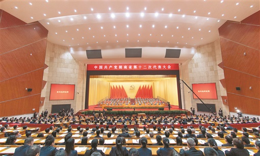 上图:11月28日,中国共产党湖南省第十二次代表大会圆满完成大会的各项议程后在省人民会堂胜利闭幕。(湖南日报全媒体记者 唐俊 摄)