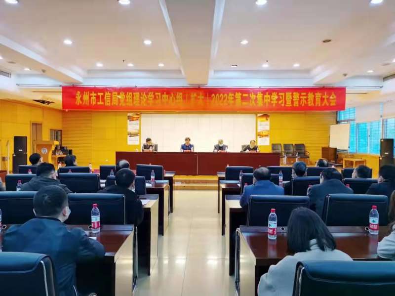 3月3日,永州市工信局举办局党组理论学习中心组(扩大)2022年第二次集中学习暨警示教育大会。局机关、市民营经济发展服务中心、市工业改制办和市无线电管理处全体党员和干部职工参加会议。