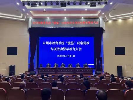 会议指出,全市教育系统广大干部职工要主动对标对表,增强抓好以案促改的政治自觉。聚焦选人用人、工程项目招投标、师德师风、落实“双减”政策、食堂管理、教辅资料征订发行等方面查摆问题,强化以案促改,持续净化教育生态;要以案为鉴,全面筑牢拒腐防变的坚固防线。要从典型案例中汲取教训,让广大干部职工知敬畏、存戒惧、守底线,始终保持严肃认真的党内政治生活,树牢理想信念,发扬优良作风,涵养良好家风,展现新担当、实现新作为,推动永州教育高质量发展。
