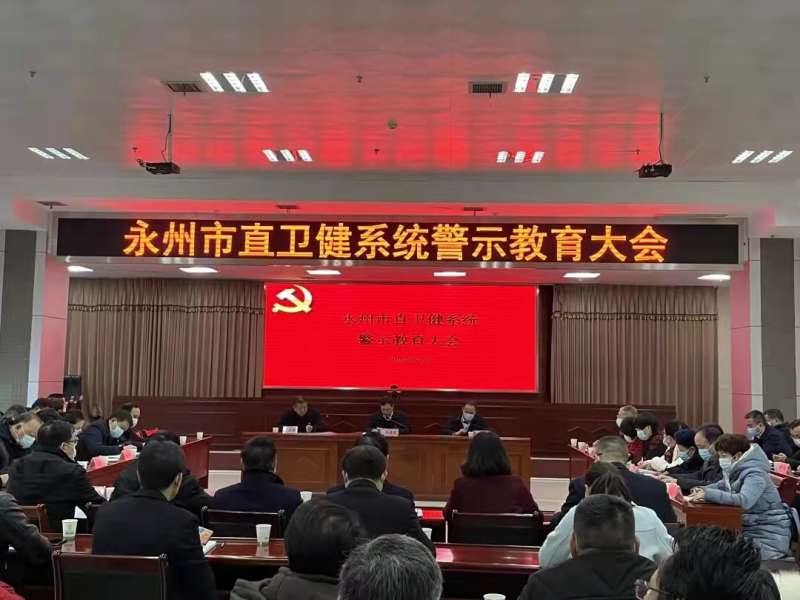 近日,永州市卫健委组织召开市直卫健系统警示教育大会,学习传达贯彻市纪委六届二次全会精神和全市领导干部警示教育大会精神。市委卫健工委书记、市卫健委党组书记刘建能主持会议并讲话,委领导、市直各医疗卫生单位党政主要负责人、分管负责人,各科室负责人等80余人参会。