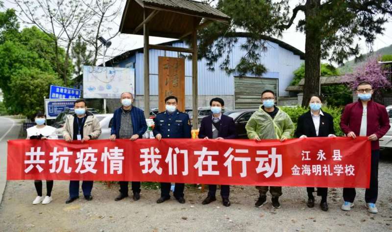 (图为县金海明礼学校为神湾卡口捐赠物资)
