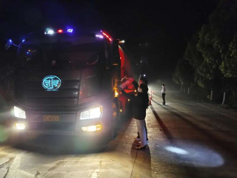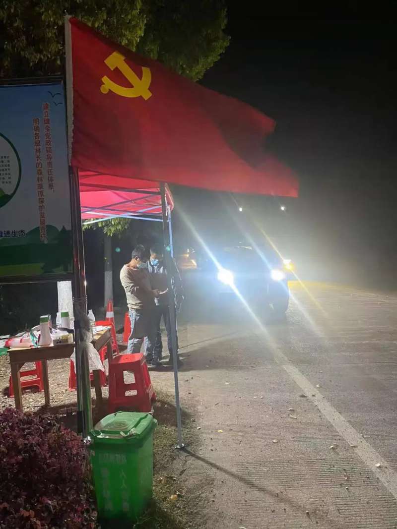 神湾疫情防控执勤卡点,灯火闪亮。执勤人员臂佩“值勤”字样红袖套,面戴口罩,有条不紊地查验经过关卡司、乘人员健康码、行程码、场所码,并认真登记好司、乘人员的详细出发地(市县乡镇)、目的地(市县乡镇、村)、48小时内核酸检测等信息。在临时搭建的简易油布帐蓬里,医护人员正认真地给司、乘人员做核酸,不放过任何疫情防控隐患。