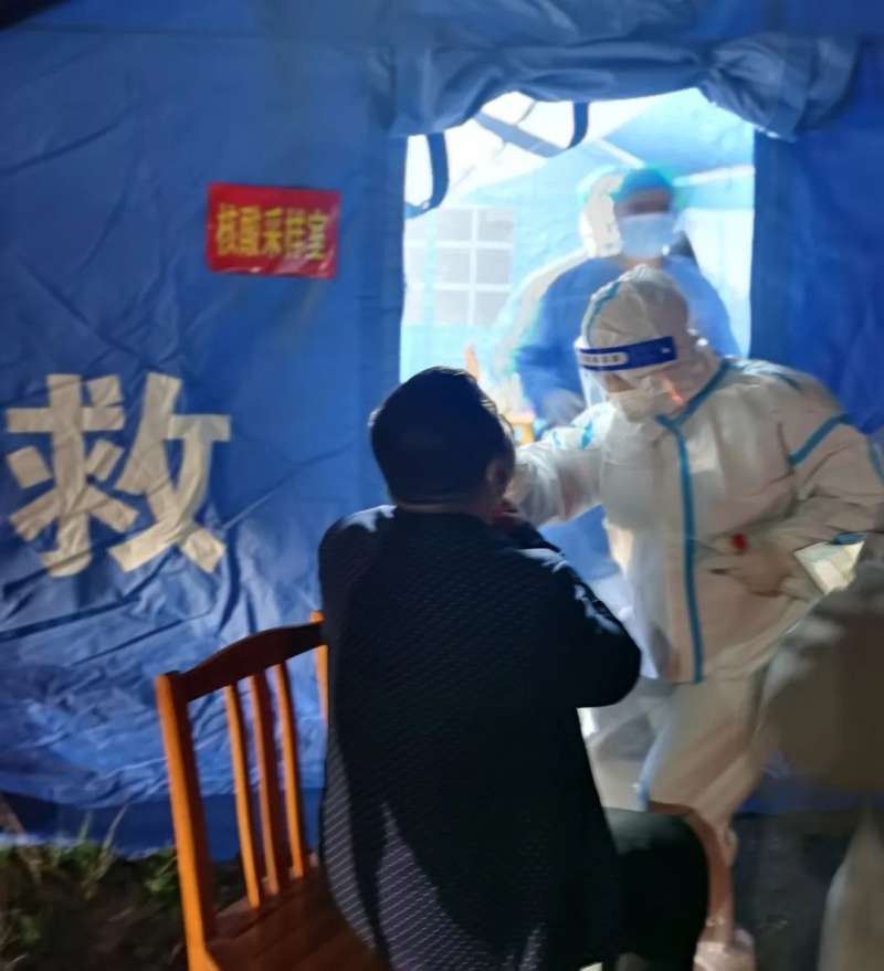 (图为神湾卡点医护人员进行核酸采样)